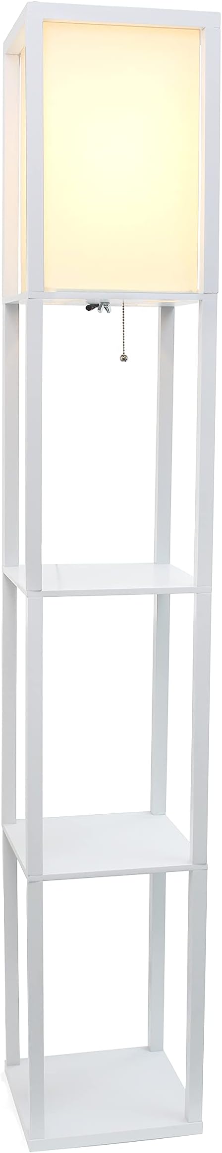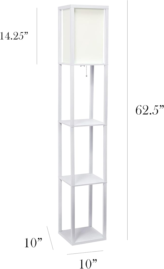 Simple Designs LF1014-WHT-LB Three Shelf Etagere Organizer Storage Floor Lamp with White Linen Shade for Living Room, Bedroom, Office, Hallway, White, with Feit LED Bulb Included