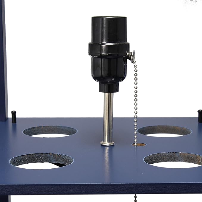 Simple Designs LF1014-NAV-LB Three Shelf Etagere Organizer Storage Floor Lamp with White Linen Shade for Living Room, Bedroom, Office, Hallway, Navy Blue, with Feit LED Bulb Included