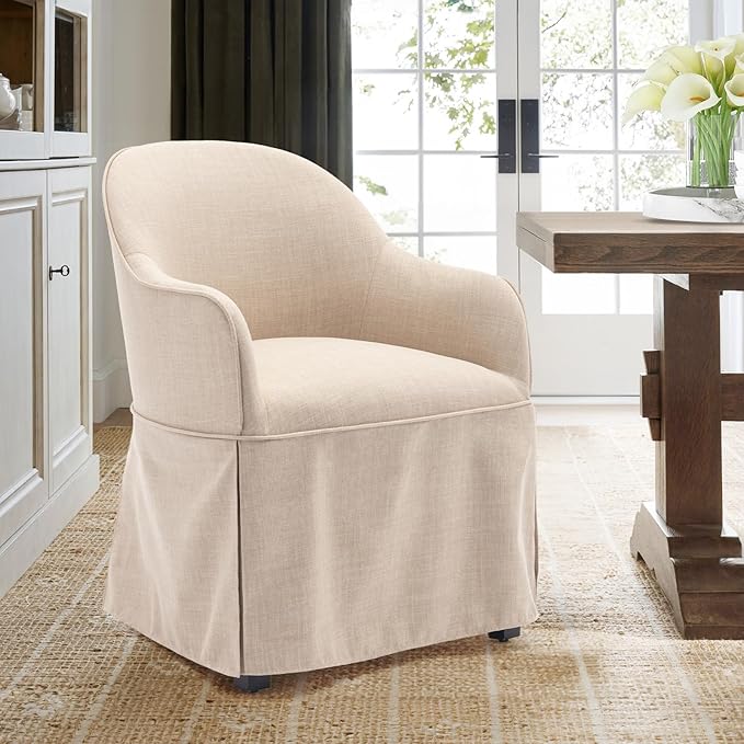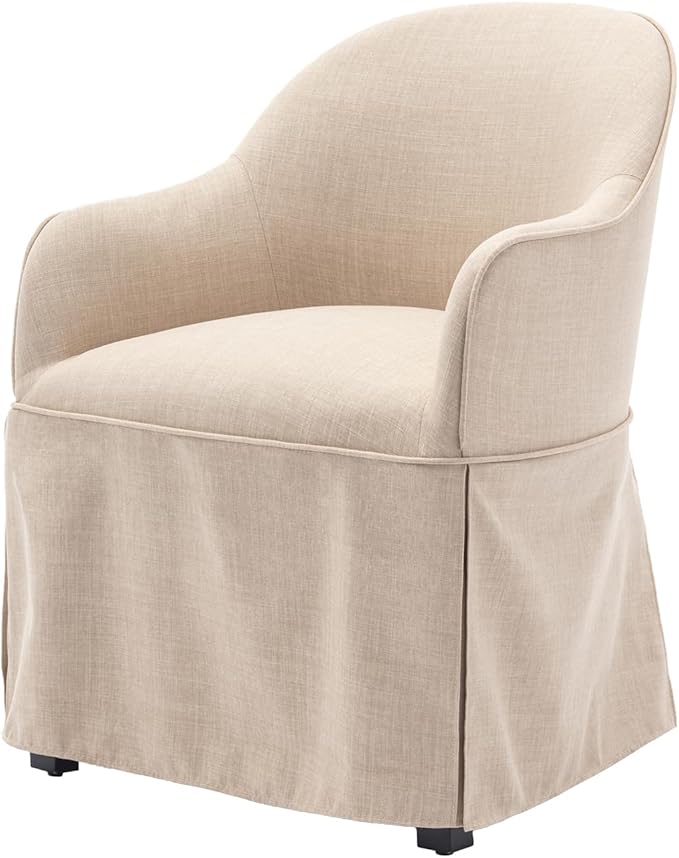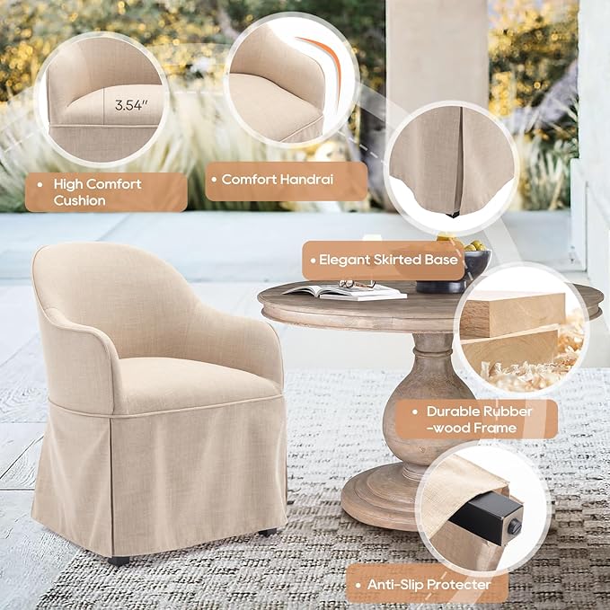 COLAMY Modern Accent Dining Chair, Barrel Accent Armchair, 20 Inch Dining Chair with Cover, Dining Chair with Back for Kitchen,Dining Room,Beige