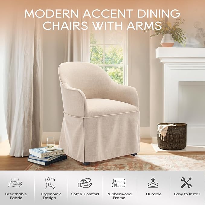 About This 【Modern Upholstered Accent Dining Chairs】The modern accent armchairs for dining room feature a sleek and modern design that...