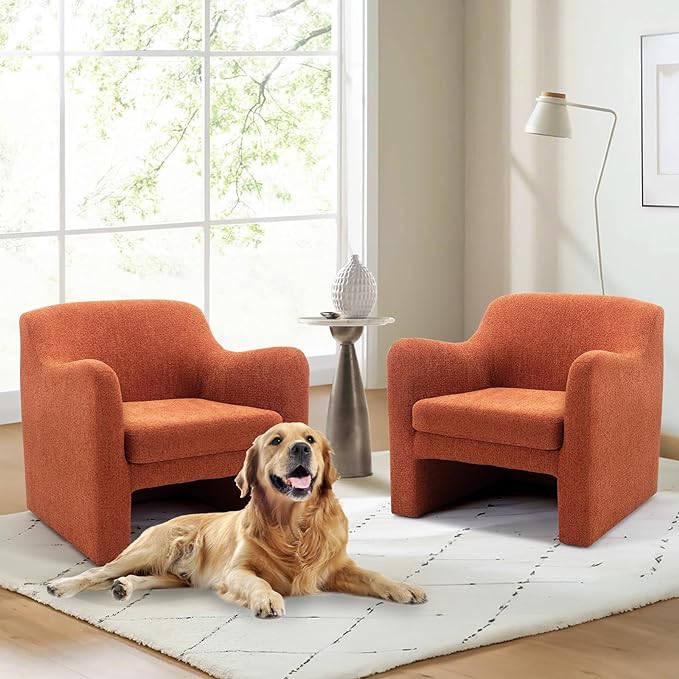 COLAMY Modern Accent Chair Set of 2, Living Room Chair, Soft Padded Armchair with Back, Comfy Fabric Accent Chair for Living Room Bedroom, Red