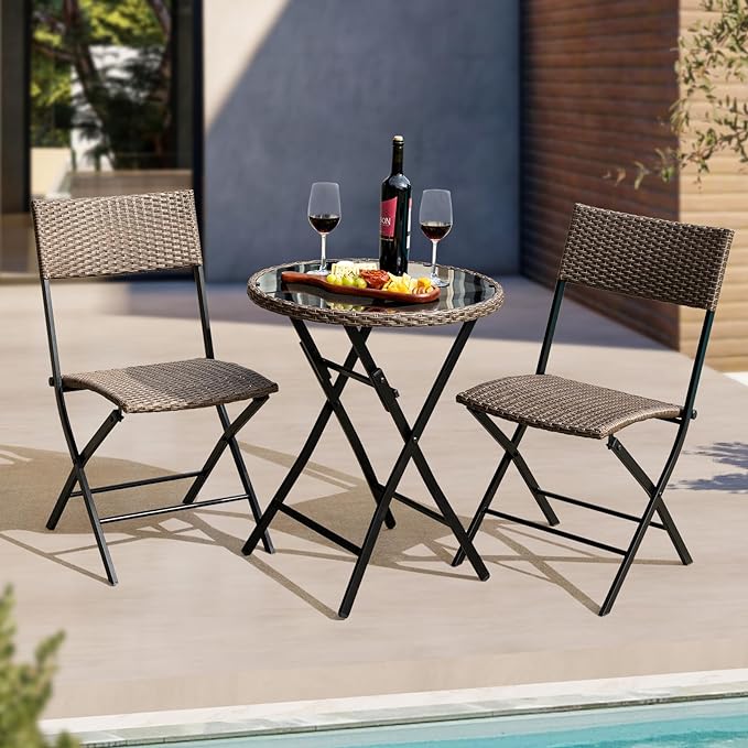 About This No All-Weather Brushed Resin Rattan Patio Set: This 3-piece outdoor bistro set features high-grade woven brown PE wicker...