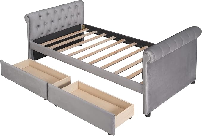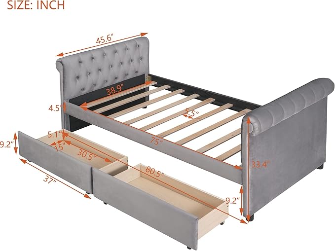About This Velvet [Maximized space] A pair of drawers under the daybed provide ample storage for your little one's toy's...