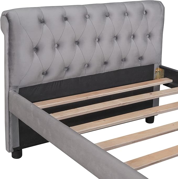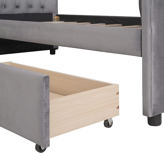 Twin Size Velvet Upholstered Daybed with Trundle and Two Armrests,Storage Wonden Bed Frame,W/Drawer,Wood Slat Support,for Apartment,Bedroom,Living Room,No Box Spring Needed,Gray