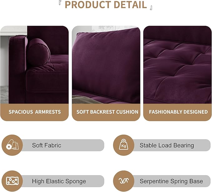 About This ✨【Comfortable Loveseat Sofa】✨ Our mid-century modern style love seat couch is made of high quality velvet fabric, soft...