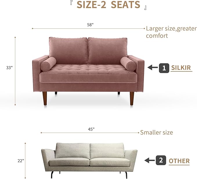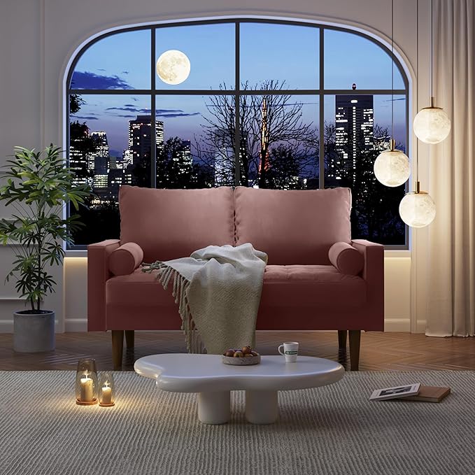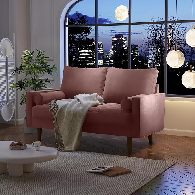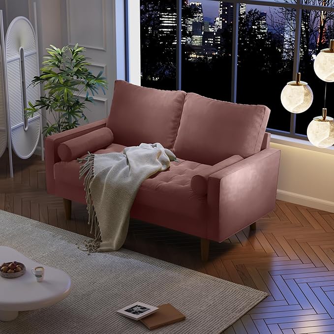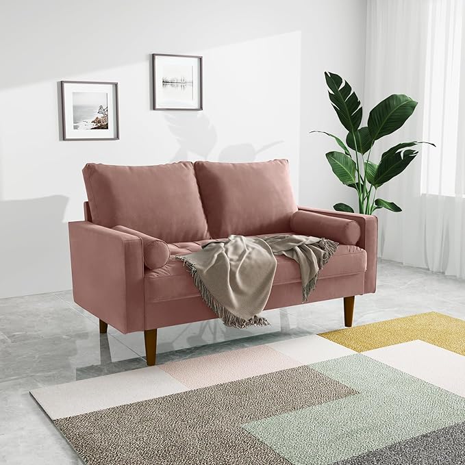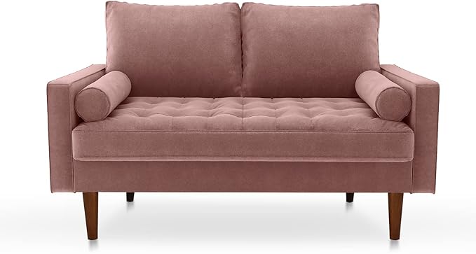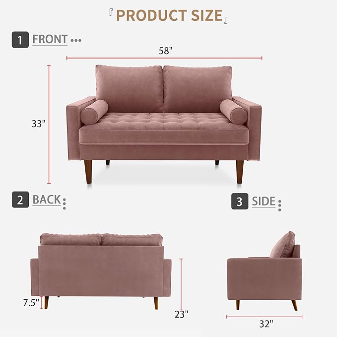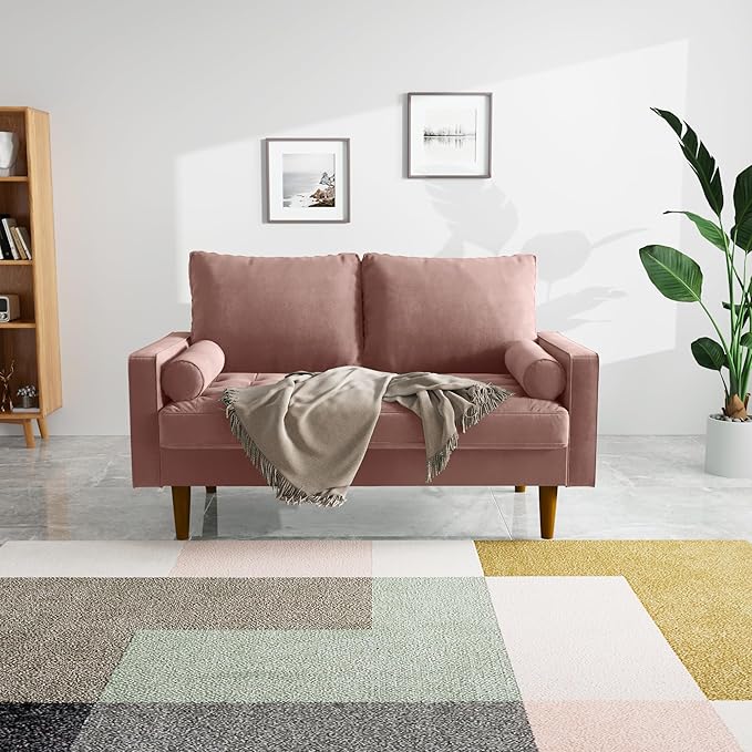 Velvet Furniture for Small Spaces, Mid-Century Modern Loveseats for Living Room, Love Seat Couch Sofas, 58 Inches, Rose