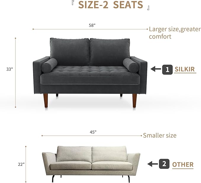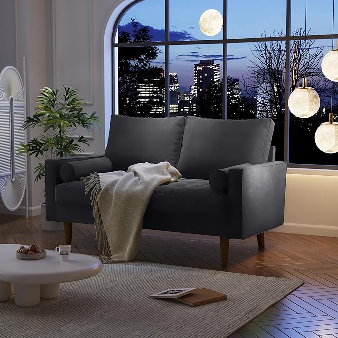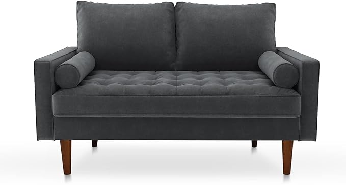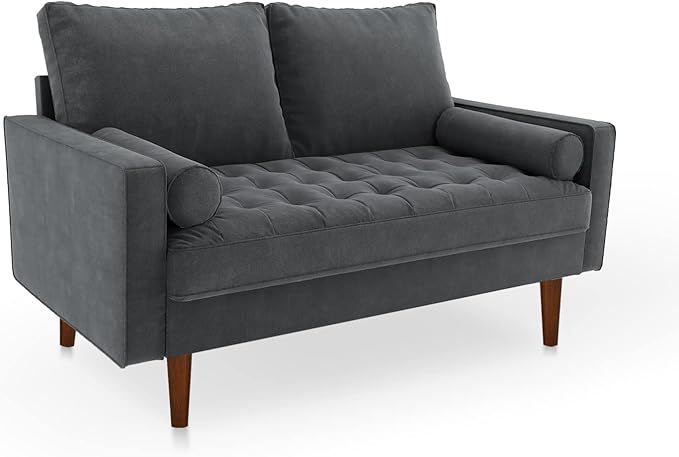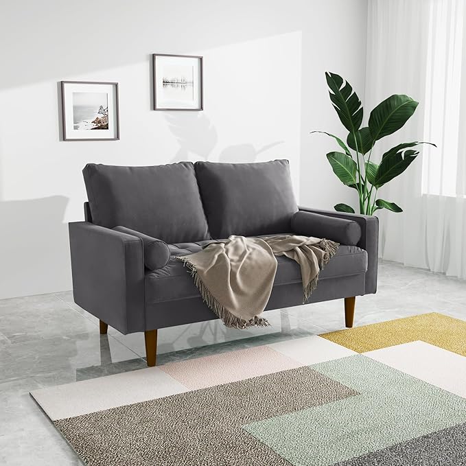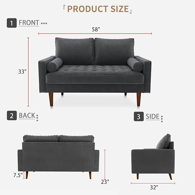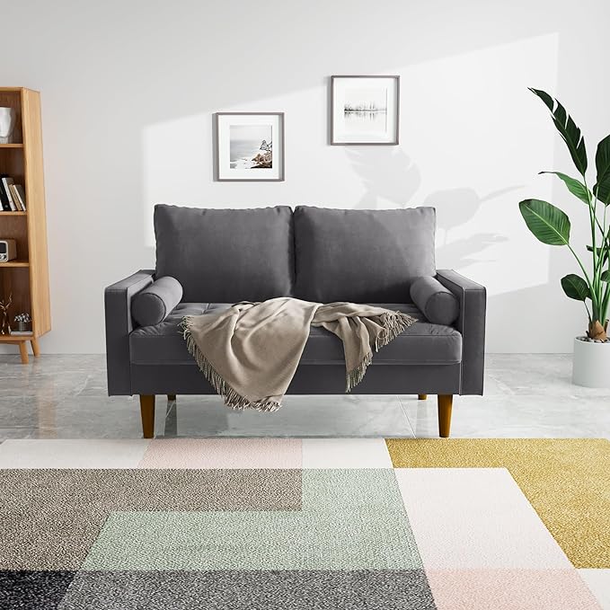 Velvet Furniture for Small Spaces, Mid-Century Modern Loveseats for Living Room, Love Seat Couch Sofas, 58 Inches, Grey