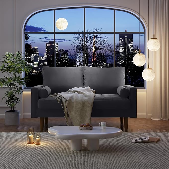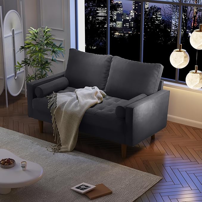 About This ✨【Comfortable Loveseat Sofa】✨ Our mid-century modern style love seat couch is made of high quality velvet fabric, soft...