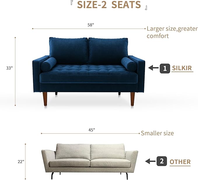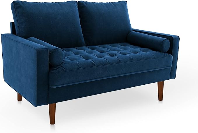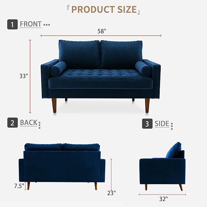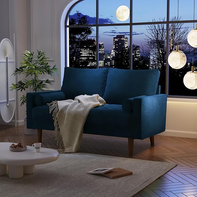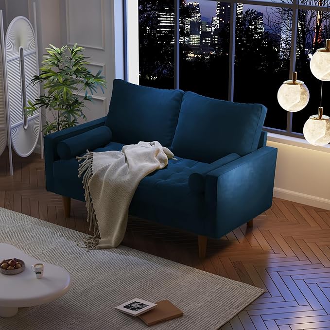 Velvet Furniture for Small, Mid-Century Modern Loveseats for Living Room, Love Seat Couch Sofas, 58 Inches, Space Blue