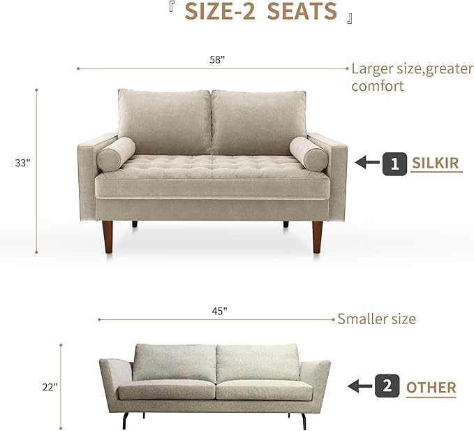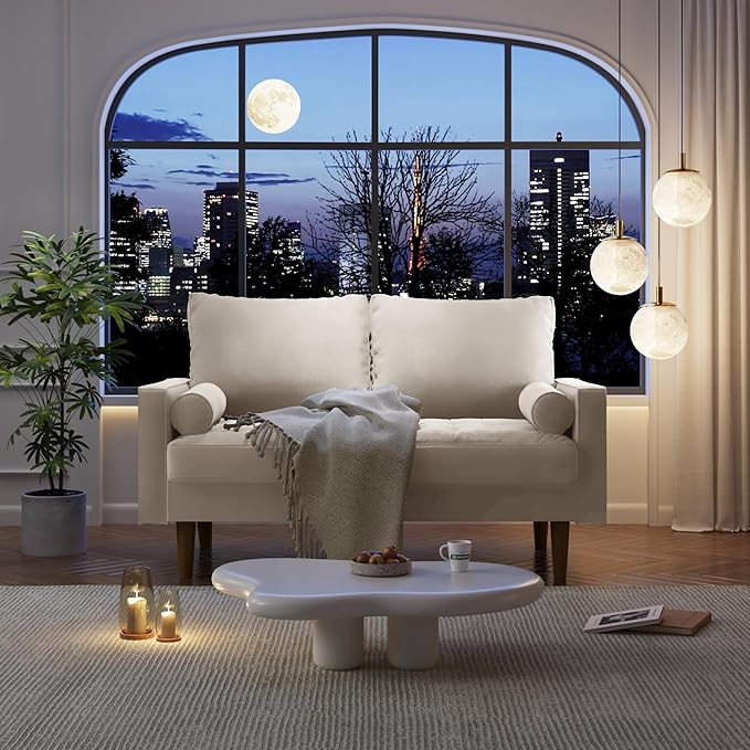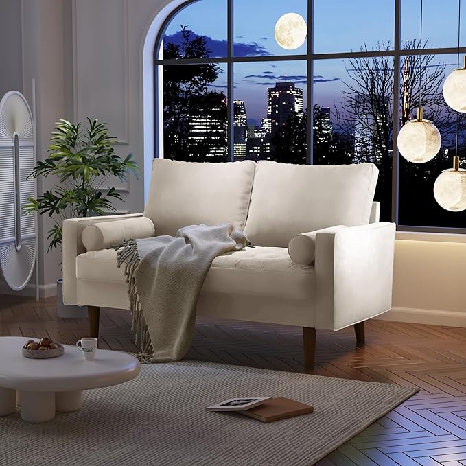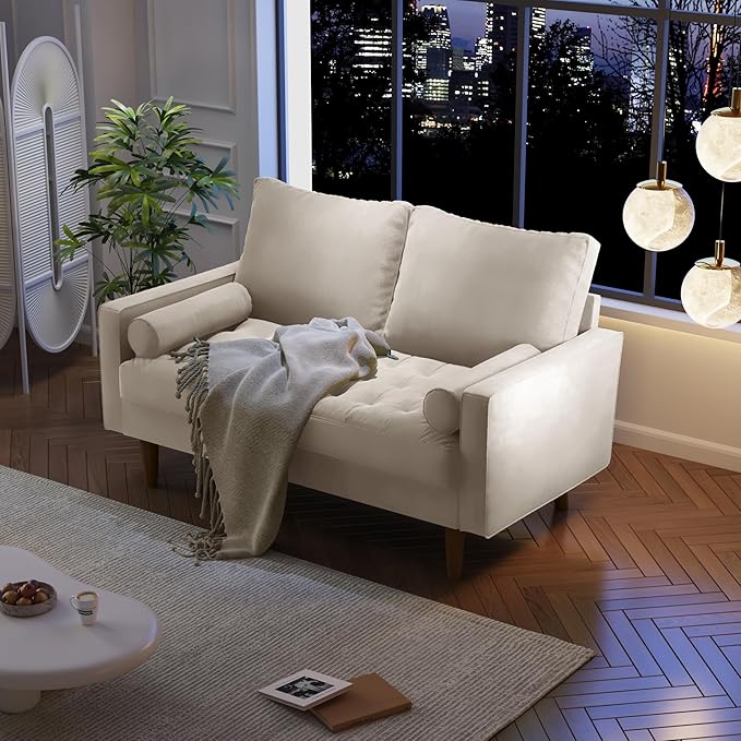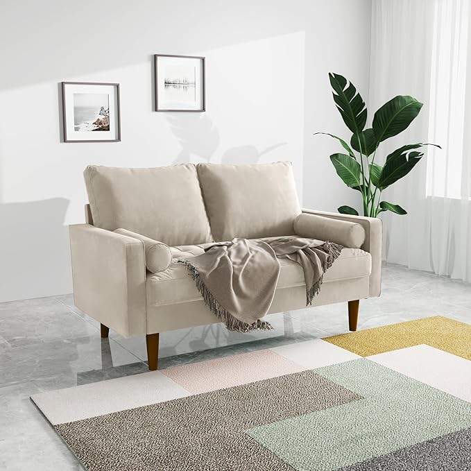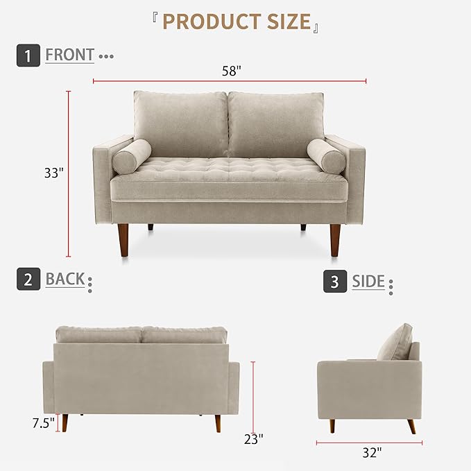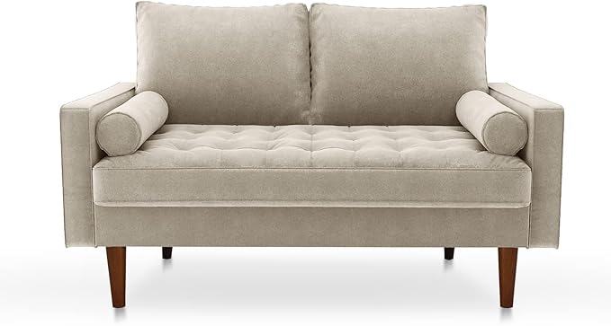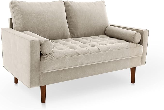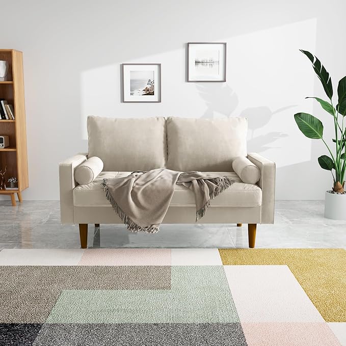 Velvet Furniture for Small Spaces, Mid-Century Modern Loveseats for Living Room, Love Seat Couch Sofas, 58 Inches, Beige