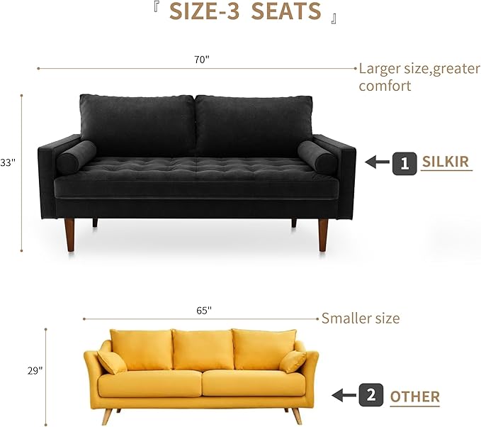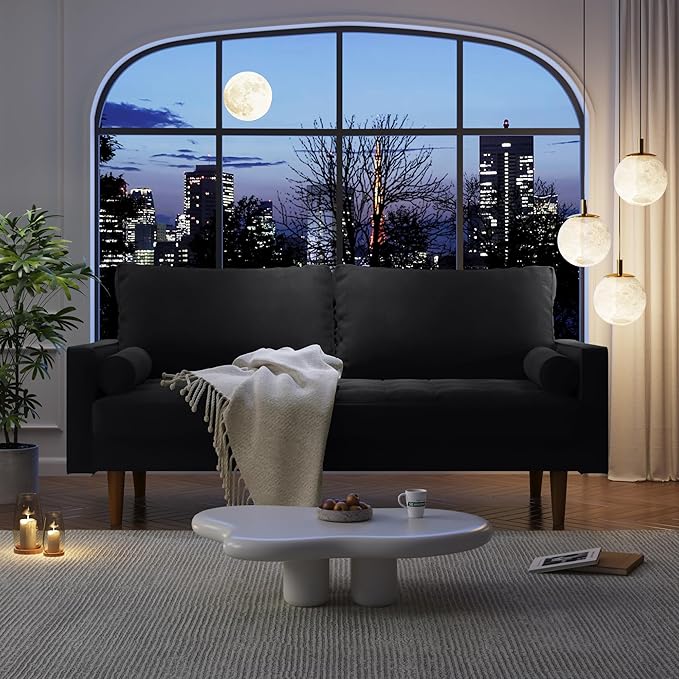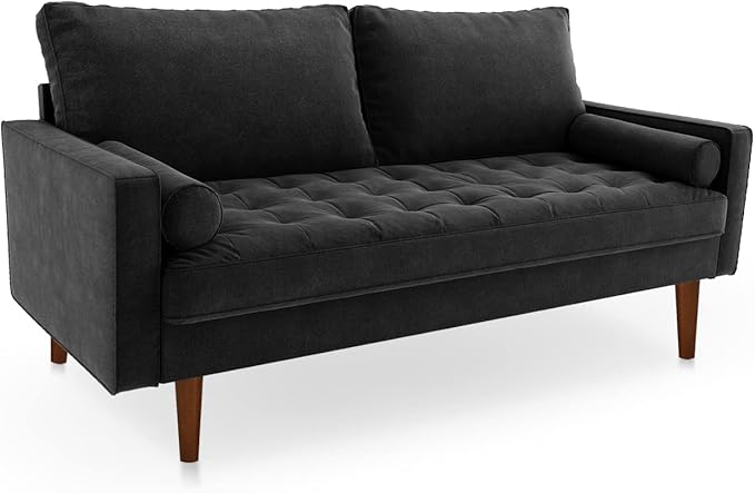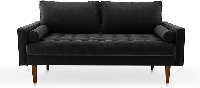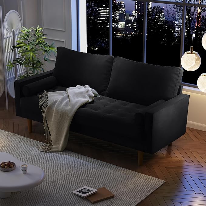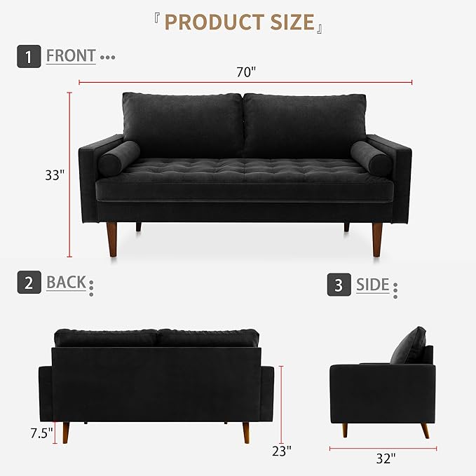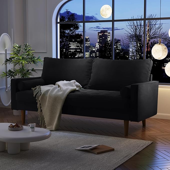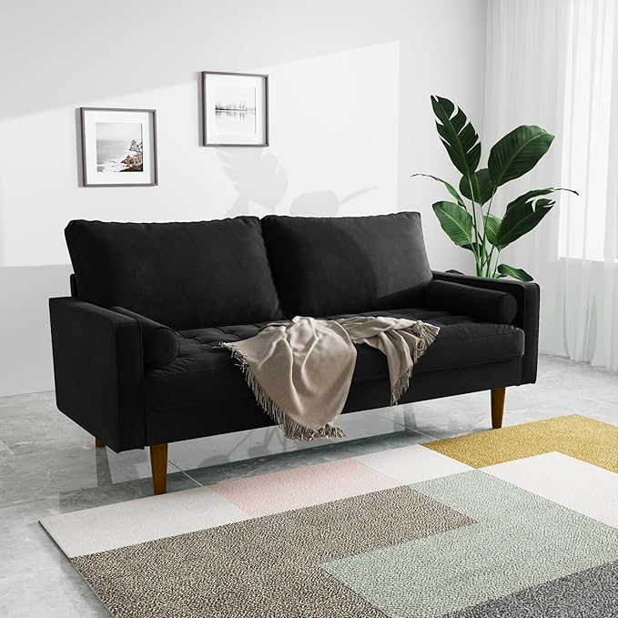 Velvet Furniture for Small Spaces, Mid-Century Modern Loveseats for Living Room, Love Seat Couch Sofas, 70 Inches, Black