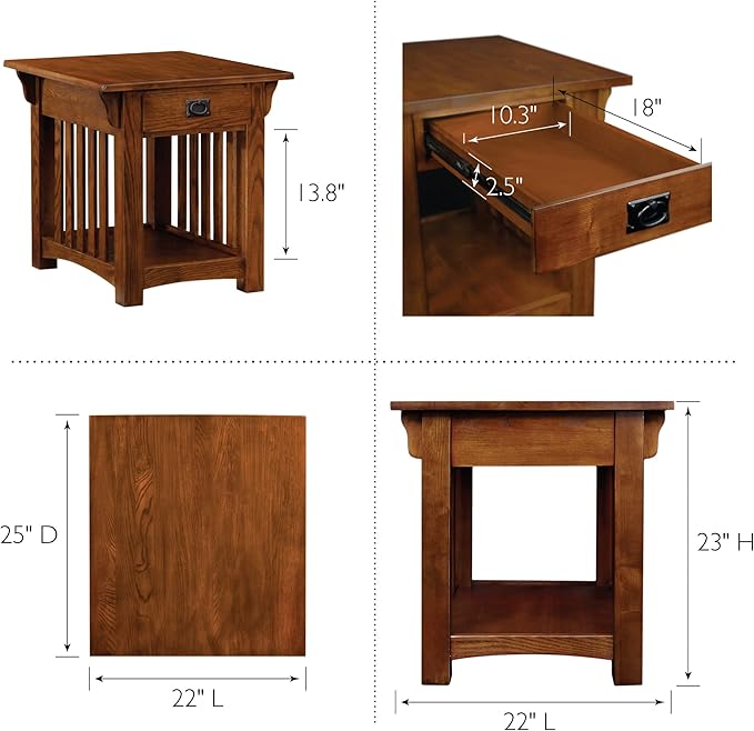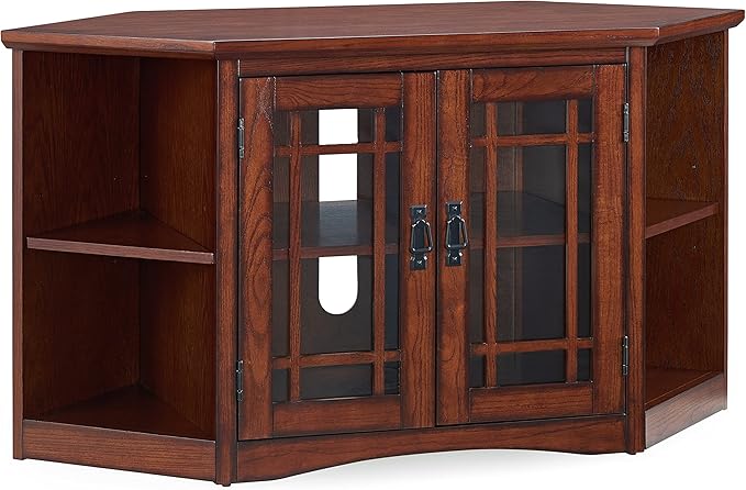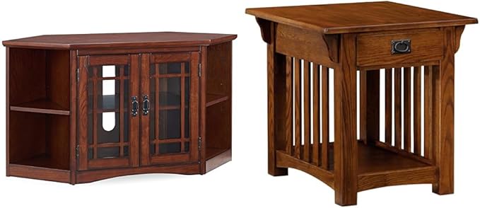 Leick Home 82287 Corner Stand with Bookcase Ends TV's, 50-inch, Mission Oak & ture Mission Drawer End Table, Solid ash and oak veneers, 22 in x 25 in x 23 in, Russet