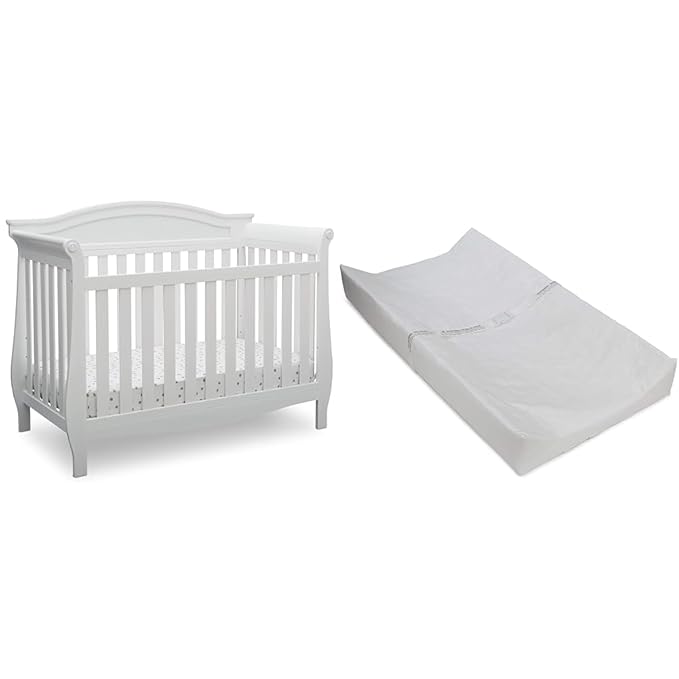 Delta Children Lancaster 4-in-1 Convertible Baby Crib, Bianca White & Contoured Changing Pad, White