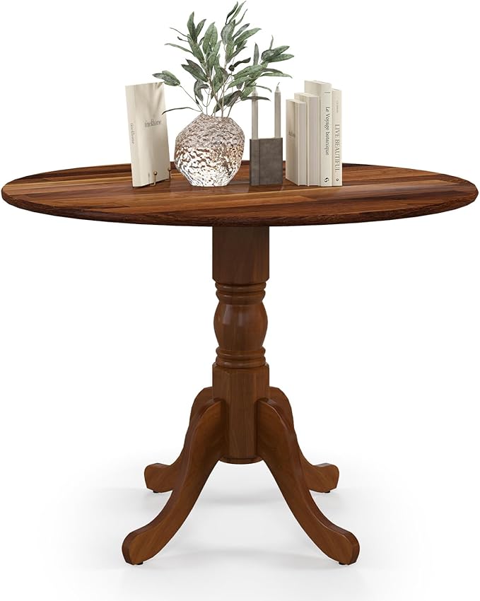 About This 🥂【Solid Wood Table for 4】 Manufactured using premium rubber wood, this circular dining table is resistant to cracking...