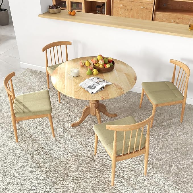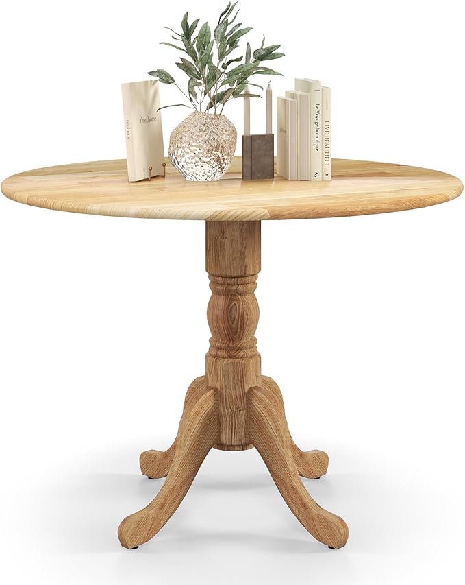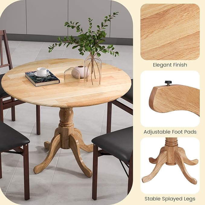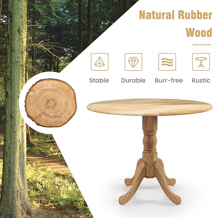 About This š„ćSolid Wood Table for 4ć Manufactured using premium rubber wood, this circular dining table is resistant to cracking...