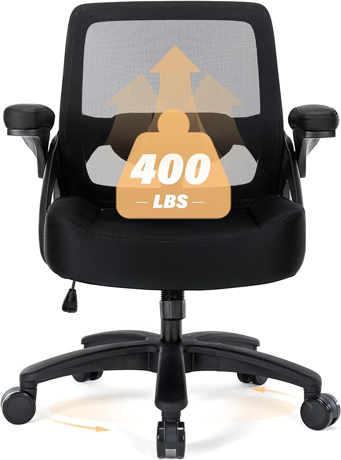 Big and Tall Office Chair 400lb- Mesh Ergonomic Heavy Duty Desk Chair- Flip Arms, Plus Size Wide Seat Executive Computer Chair for Large People- Home Office Swivel Rolling Task Chairs
