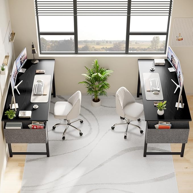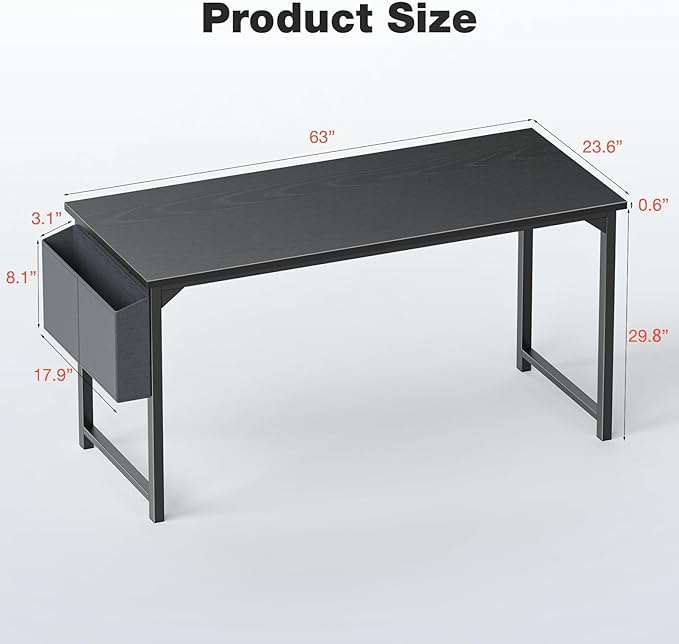OLIXIS Computer Desk 63 Inch Home Office Work Study Writing Student Kids Bedroom Wood Modern Simple 2 Person PC Table with Storage Bag & Headphone Hooks, Normal Black