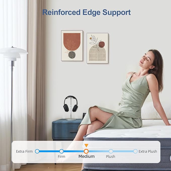 Queen Size Mattress, 12 Inch Memory Foam Mattress, Hybrid Mattress in a Box with Independent Spring, Soft and Comfortable Medium Firm Mattress, Pressure Relief, CertiPUR-US Certified