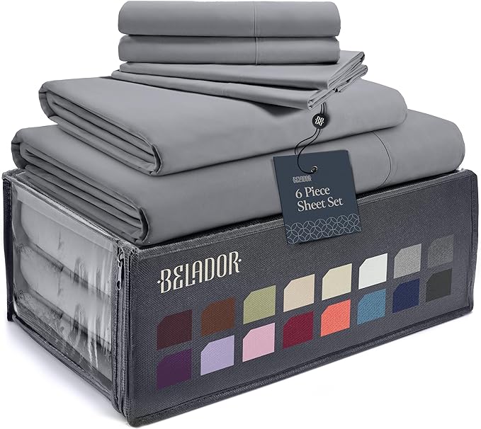 BELADOR Silky Soft Cali King Sheet Set -Luxury 6 Piece Bed Sheets for California King Size Bed, Secure-Fit Deep Pocket Sheets with Elastic, Breathable Hotel Sheets & Pillowcase Set, Wrinkle Free