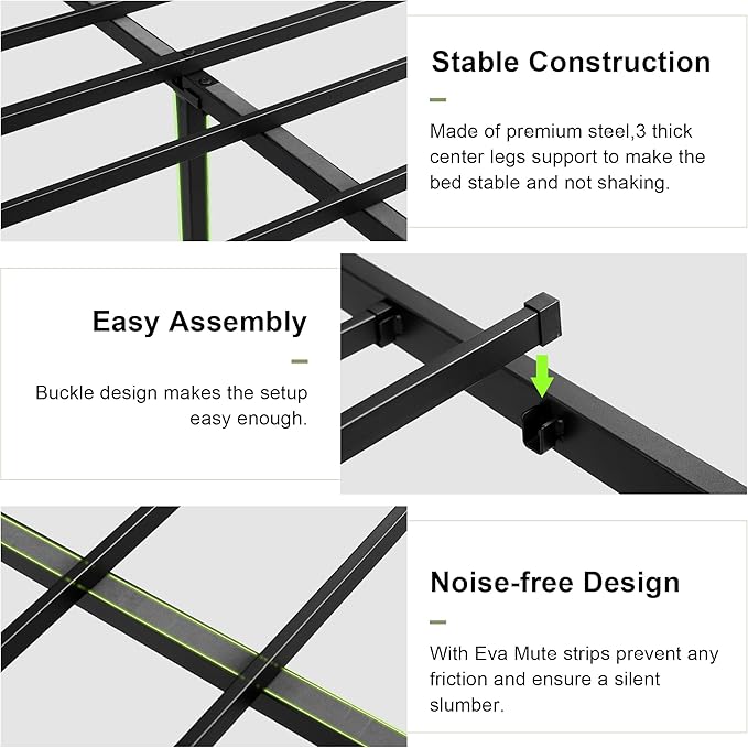 Feonase Full Bed Frame with Type-C & USB Port, Metal Platform Beds, with Faux Leather Upholstered Headboard & Footboard, 12" Underbed Storage Space, Easy Assembly, Noise-Free, Black