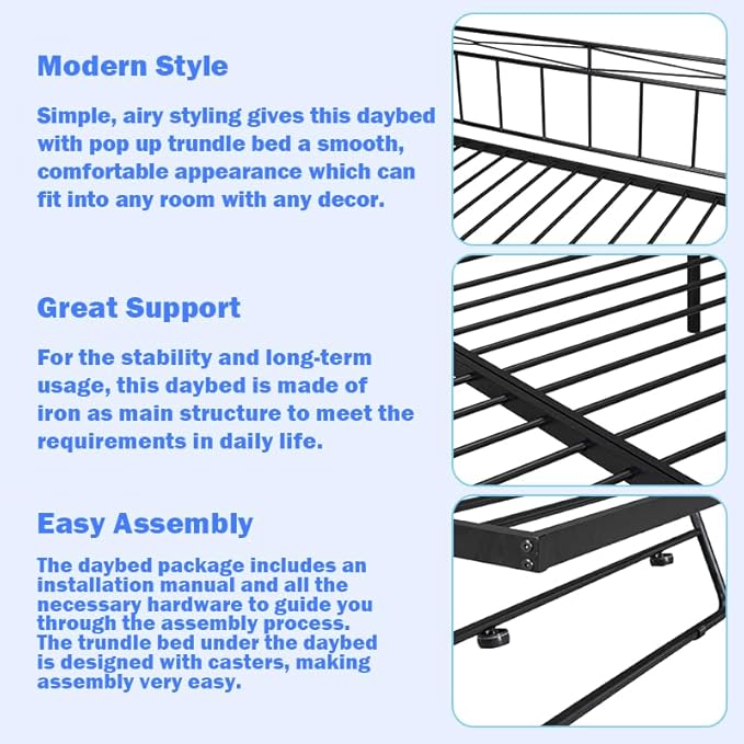 About This 🛌【Modern Style Daybed】With its contemporary design and elegant 'X' line finial, this daybed with adjustable trundle exudes simplicity...