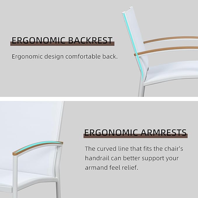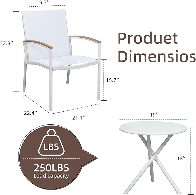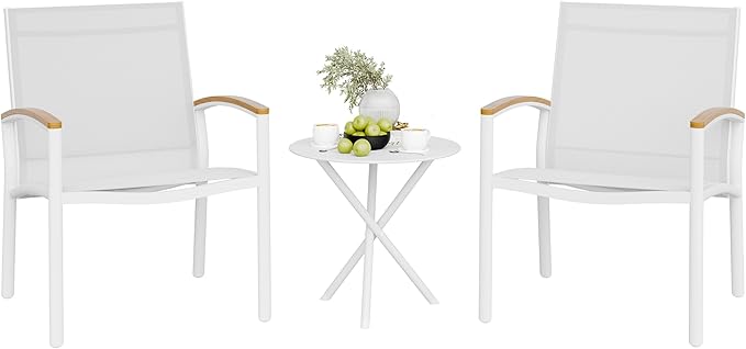Shintenchi 3 Pieces Outdoor Patio Bistro Sets, Textilene Fabric Small Patio Furniture Set, Front Porch Chairs Conversation Set with Table for Lawn, Garden, Balcony, Poolside (White)