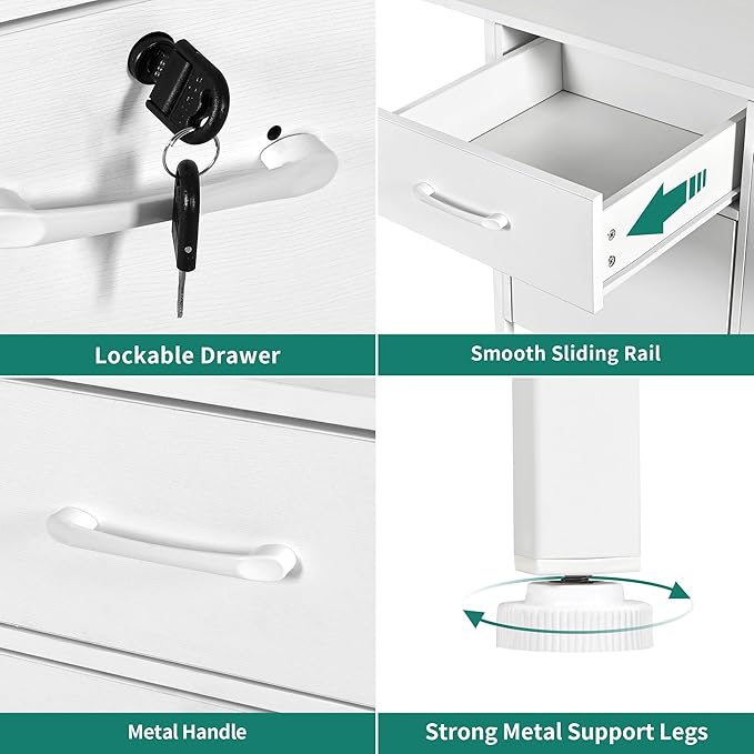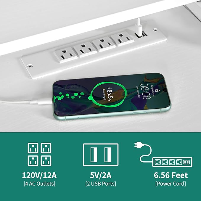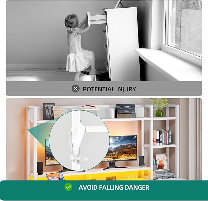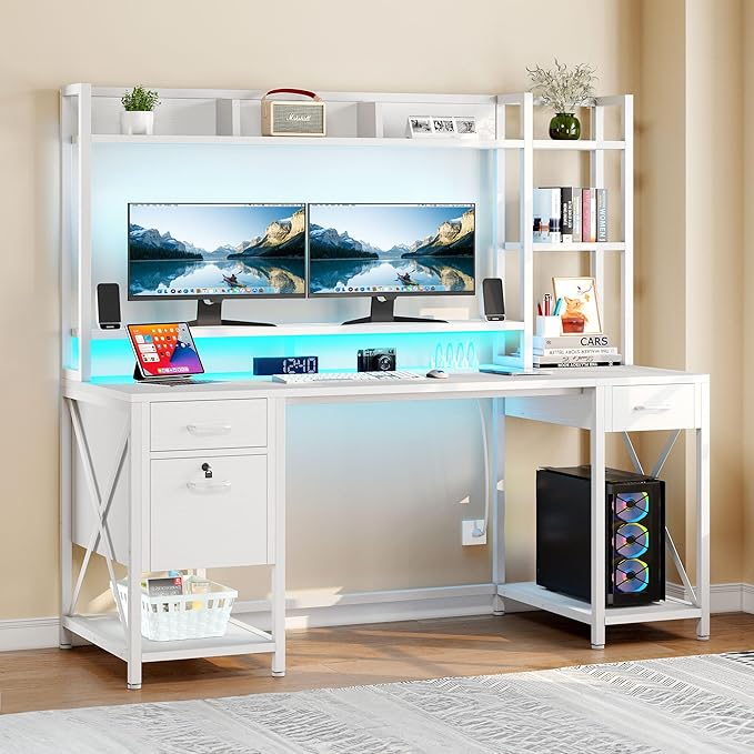YITAHOME Computer Desk with Drawers & Hutch, 59.1" Office Desk with LED Lights & Power Outlets, Gaming Desk with Monitor Stand & Storage Shelves, White