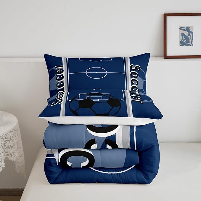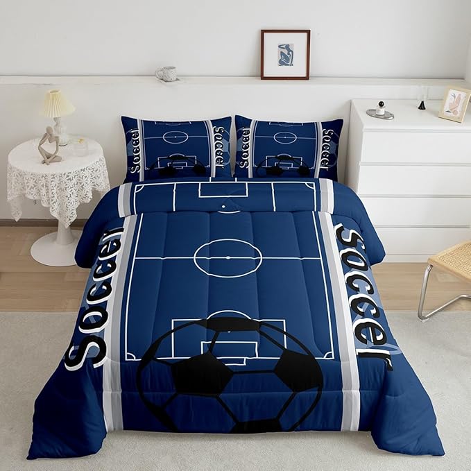 Feelyou Kids Soccer Ball Game Comforter Set Queen Size Rugby Sports Bedding Set for Boys Girls Teens Bedroom Decor Football Comforter Football Lover Duvet Set with 2 Pillow Case