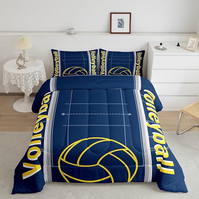 Feelyou Volleyball Bedding Set King Size Sports Game Comforter Set for Kids Boys Girls Decor Volleyball Player Comforter Microfiber Sports Gaming Duvet Set Bedroom Quilt Set