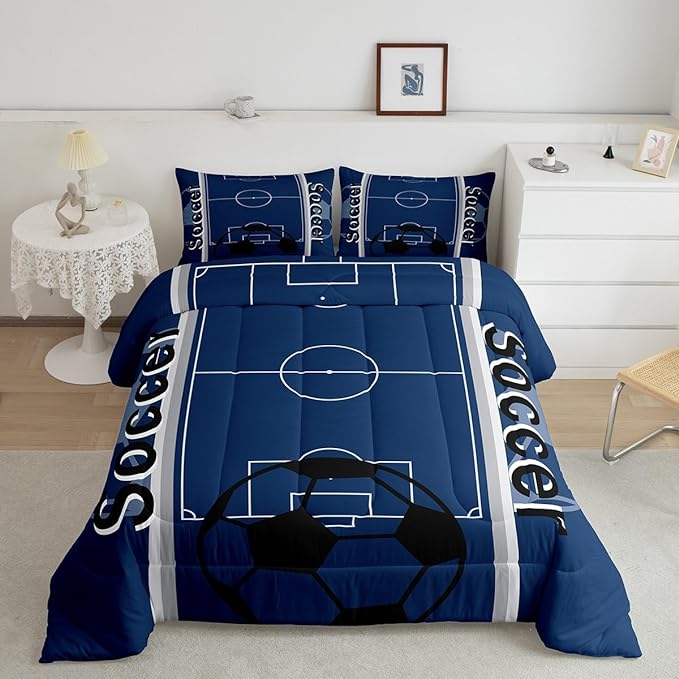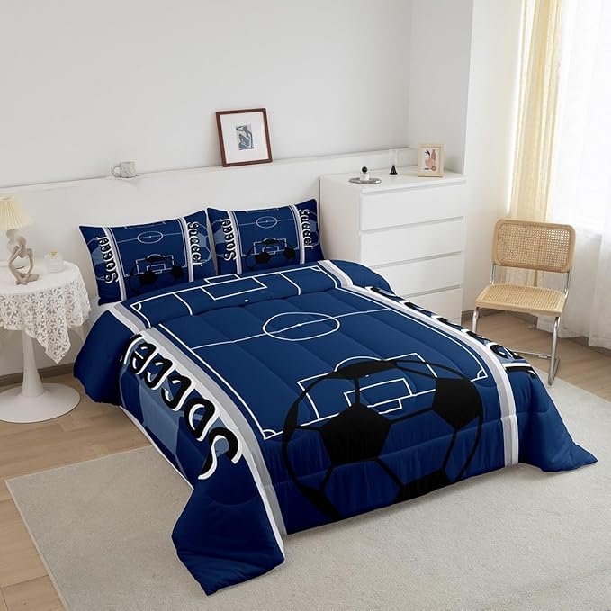 Feelyou Kids Soccer Ball Game Comforter Set King Size Rugby Sports Bedding Set for Boys Girls Teens Bedroom Decor Football Comforter Football Lover Duvet Set with 2 Pillow Case