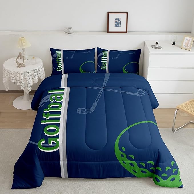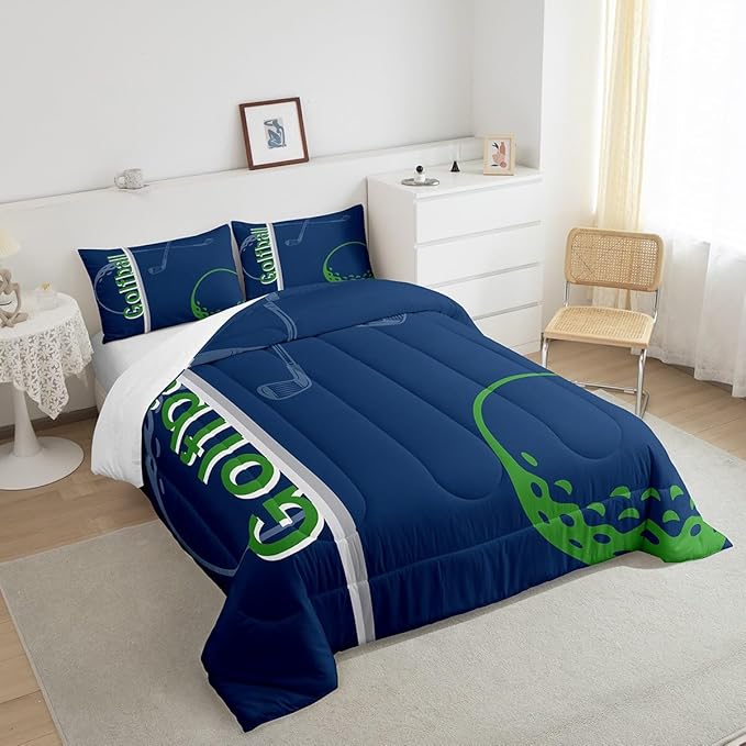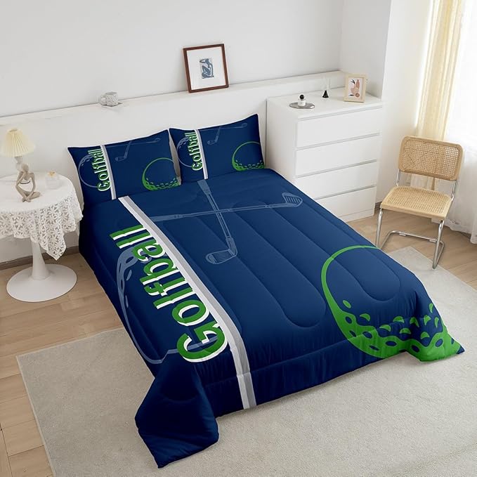 Feelyou Kids Golf Comforter Set Queen Size Ball Sports Bedding Set for Boys Girls Teens Bedroom Decor Golf Ball Lover Comforter Women Men Ball Games Duvet Set with 2 Pillow Case