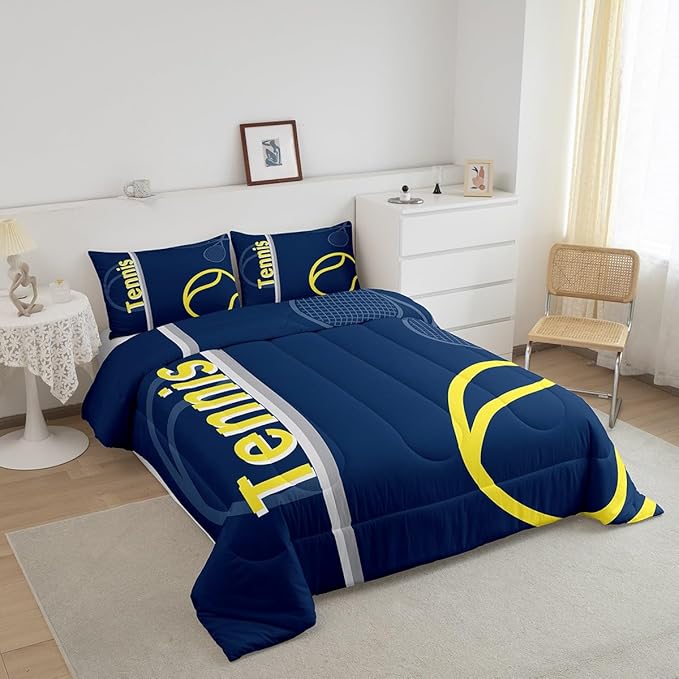 Feelyou Kids Tennis Comforter Set Twin Size Tennis Sports Bedding Set for Boys Girls Teens Bedroom Decor Tennis Gaming Comforter Blue Yellow Tennis Lovers Duvet Set with 1 Pillow Case