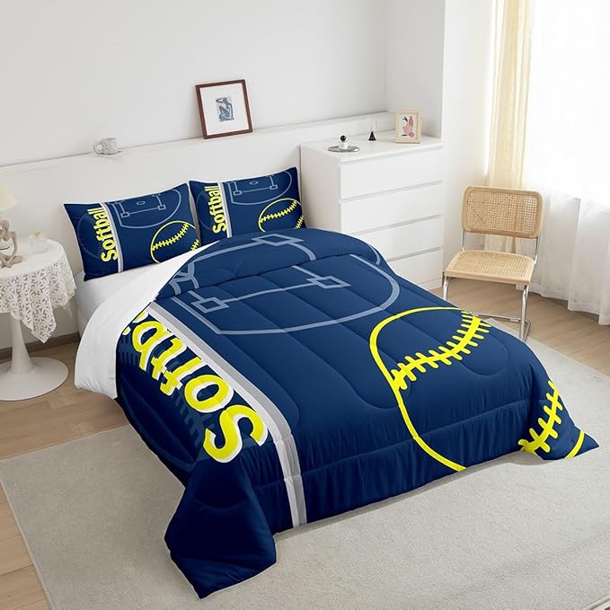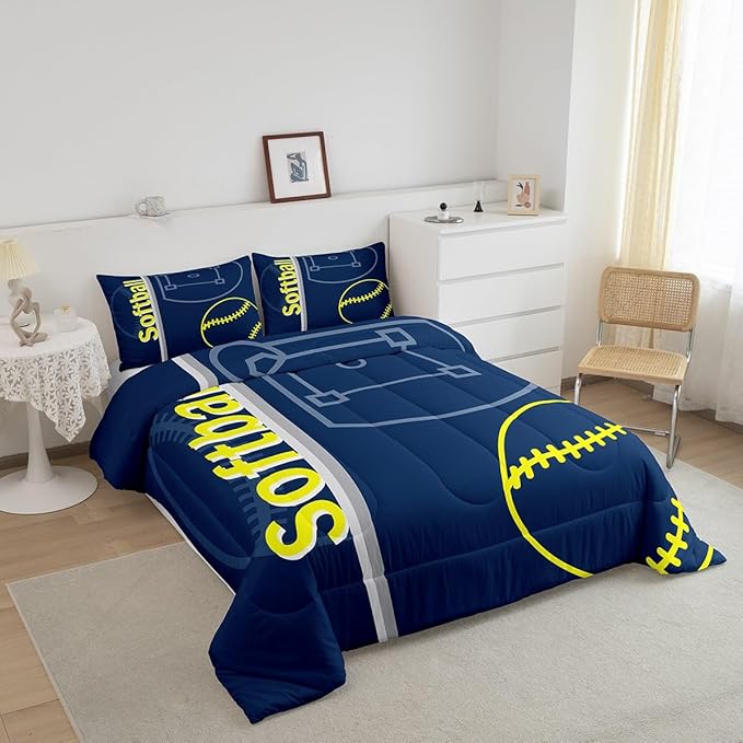 Feelyou Kids Softball Comforter Set King Size Sports Game Bedding Set for Boys Girls Teens Bedroom Decor Baseball Comforter Women Men Softball Gaming Duvet Set with 2 Pillow Case