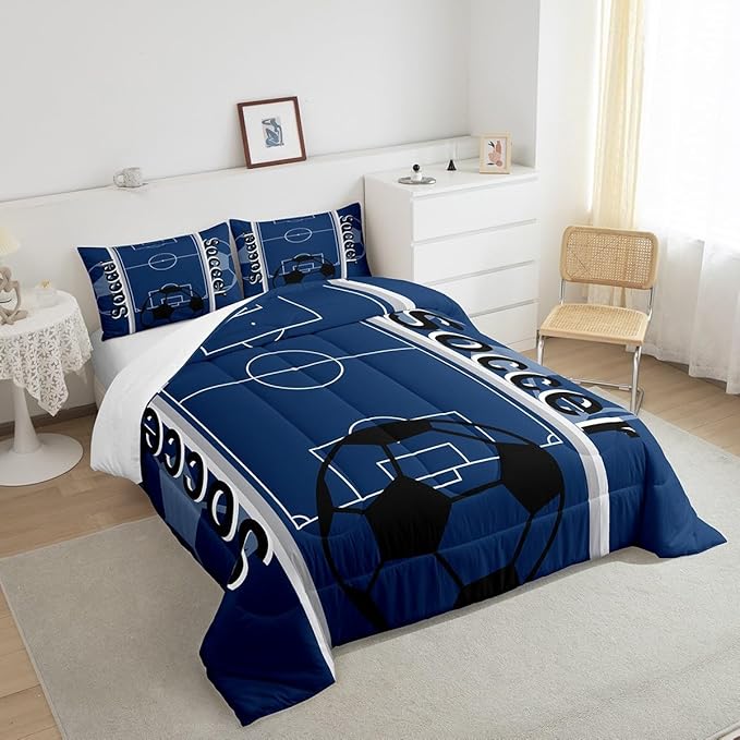 Feelyou Kids Soccer Ball Game Comforter Set Twin Size Rugby Sports Bedding Set for Boys Girls Teens Bedroom Decor Football Comforter Football Lover Duvet Set with 1 Pillow Case