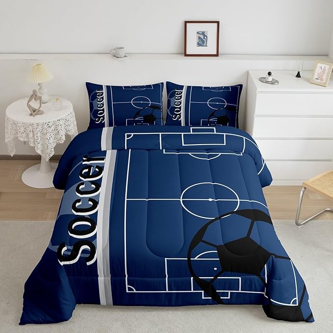 Feelyou Kids Football Comforter Set King Size Rugby Sports Bedding Set for Boys Girls Teens Bedroom Decor Soccer Ball Game Comforter Football Lover Duvet Set with 2 Pillow Case