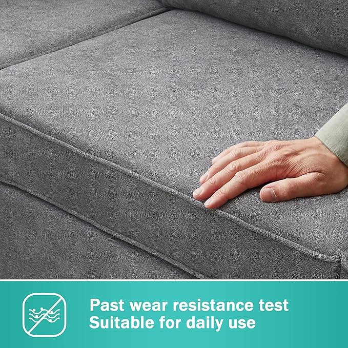 91" Modern Upholstered Living Room Sectional Sofa,with 3 Pillows,L Shape Wood Frame Furniture Couch,w/Track Armrests,Cushions and Legs,for Dorm, Apartment,Studio,Office,Grey
