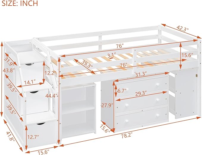 About This Solid Wood+mdf Efficient Storage Solutions: Elevate your bedroom's organization with three spacious drawers, lateral shelves, and storage stairs...