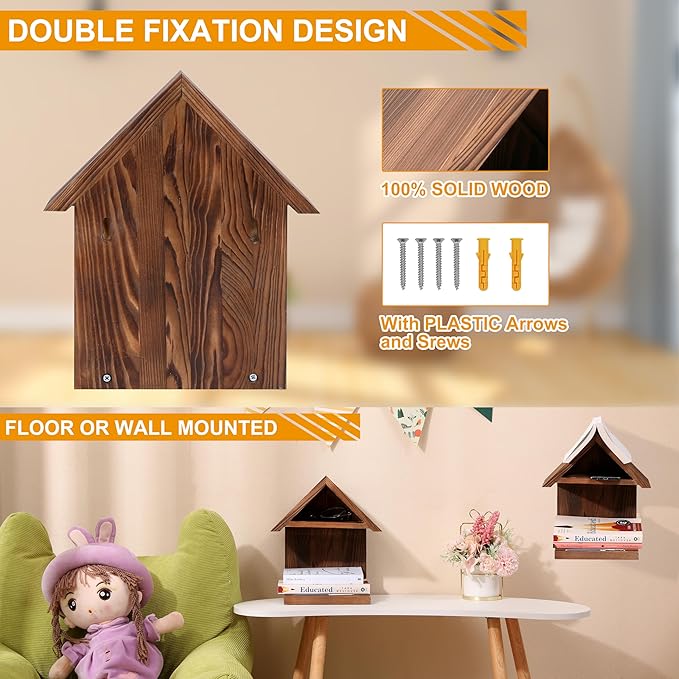 About This 【PERFECT SIZE】The wood wall mounted bookcase is 7.48X7.02X11.02INCHES with pen,phone and glasses holders,Triangle Bookshelf is made from 100%...