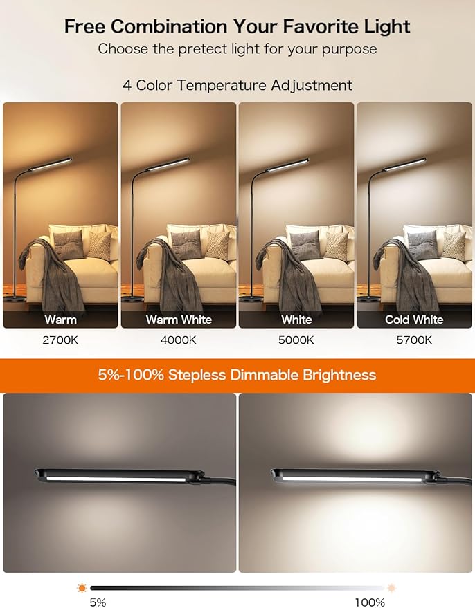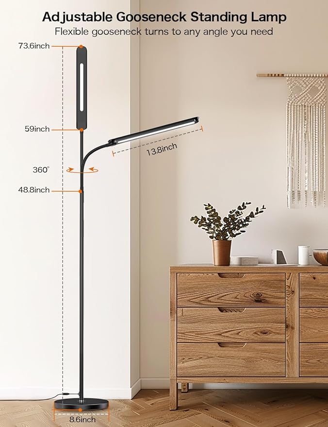 73" LED Floor Lamp,24W Super Bright Double-Sided Tall Standing Lamp with Timer,Remote and Touch Control,Adjustable Colors & Brightness Gooseneck Floor Lamps for Living Room Bedroom Office