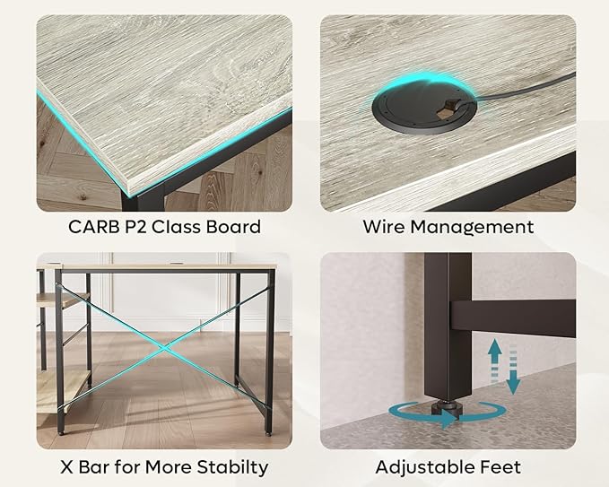 Bestier L Shaped Desk, 95.2 Inch Reversible Corner Computer Desk with Shelves, 2 Person Long Table for Home Office, Large Writing Storage Workstation with 3 Cable Holes, Rustic Brown, Grey Oak