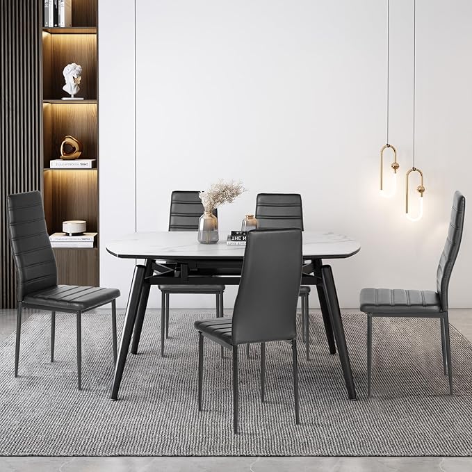 PU Leather Chair Set of 4, High Back Dining Seat with Soft Padded & Foot Cap Protection for Home Kitchen Living Room, 300lbs Capacity, Black
