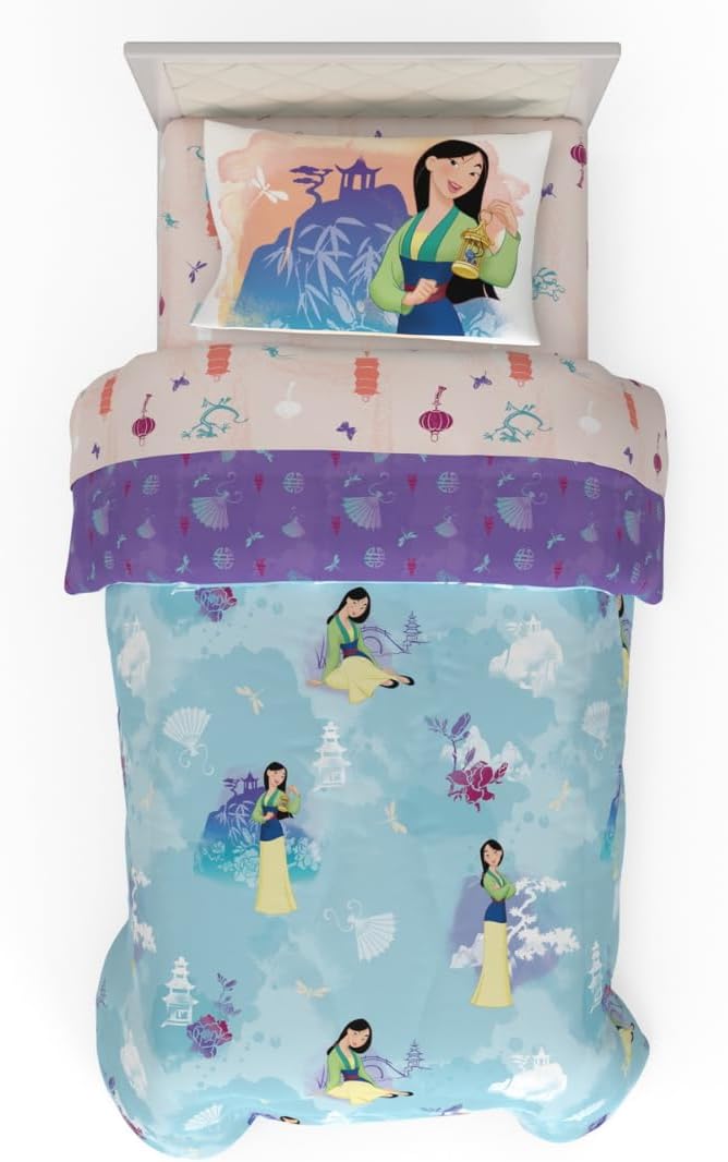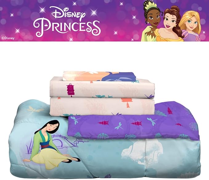 Franco Disney Princess Mulan Kids Bedding Super Soft Microfiber Comforter and Sheet Set, 4 Piece Twin Size, (Official Licensed Product)