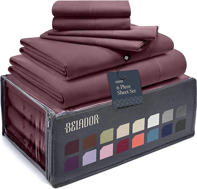 BELADOR Silky Soft Cali King Sheet Set -Luxury 6 Piece Bed Sheets for California King Size Bed, Secure-Fit Deep Pocket Sheets with Elastic, Breathable Hotel Sheets & Pillowcase Set, Wrinkle Free