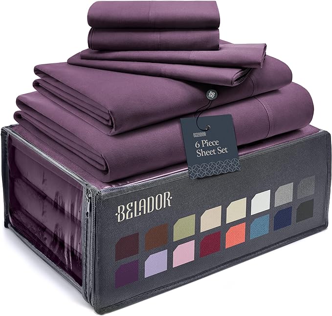 BELADOR Silky Soft Full Sheet Set - Luxury 6 Piece Bed Sheets for Full Size Bed, Secure-Fit Deep Pocket Sheets with Elastic, Breathable Hotel Sheets and Pillowcase Set, Wrinkle Free Oeko-Tex Sheets