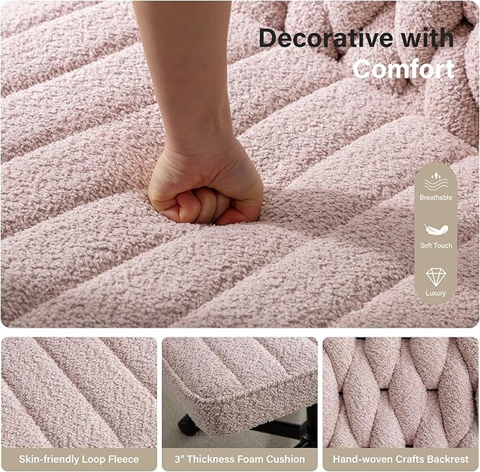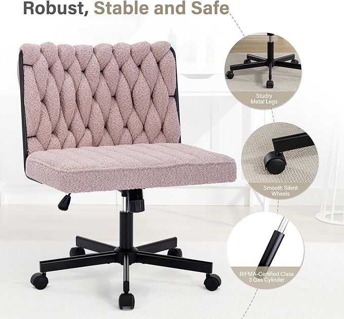 Criss Cross Legged Office Desk Chair with Wheels, Modern Armless Desk Chair with Wide Seat, Home Office Chair for Work, Meditation, Vanity, Pink
