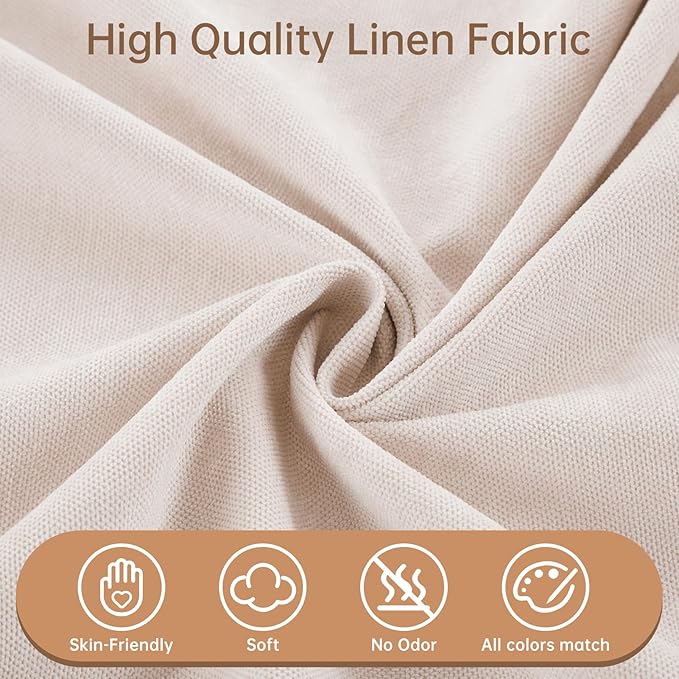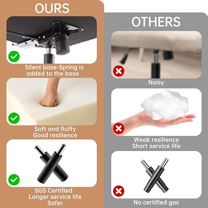 Criss Cross Armless Home Office Chair with Replaceable Wheels/Fixed Base and Lumbar Support for Living Room, Wide Seat Adjustable Legged Swivel Chair, Comfy Linen Computer Chair for Vanity, Beige