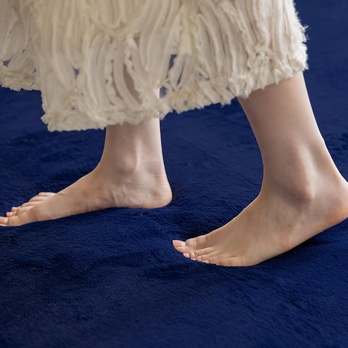 Faux Rabbit Fur Rug - 1.18" Thick Soft Fluffy Area Rug, Non-Slip Memory Foam Crawling Mat, Dark Blue, 59"x59"
