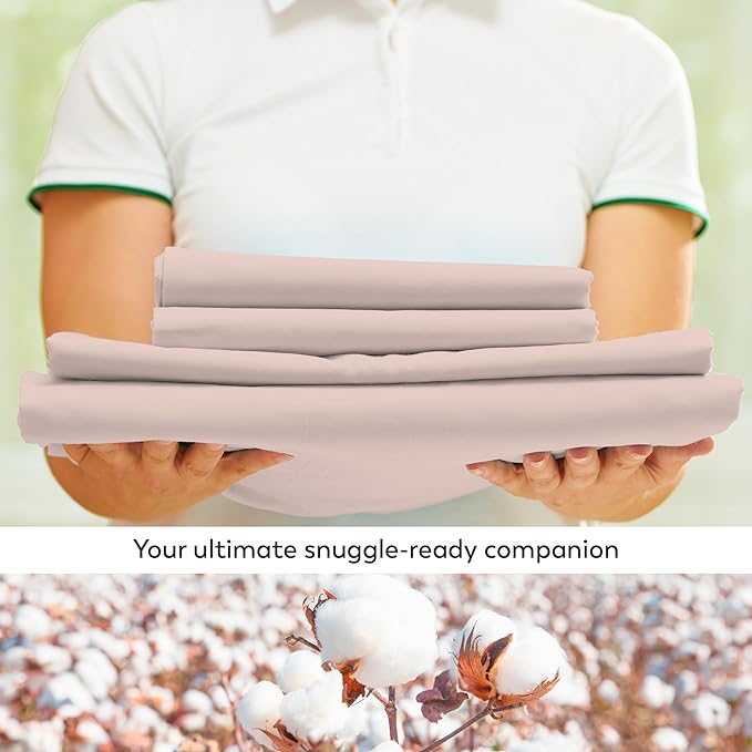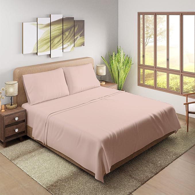 Purity Home Organic 100% Cotton Light Pink Full Size Bed Sheets, Percale Weave Cotton Sheet Set for Full Size Bed, Crisp, Cooling & Breathable Bed Sheets, Fits Mattress Upto 16" Deep Pocket