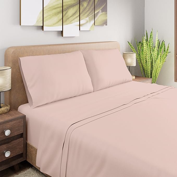 Purity Home Organic 100% Cotton Percale Twin Sheets Set Light Pink, Twin Bed Sheets Set for Dorm, 14" Deep Pocket Twin Cotton Sheet Set, Breathable & Cooling Light Pink Sheets for Hot Sleepers