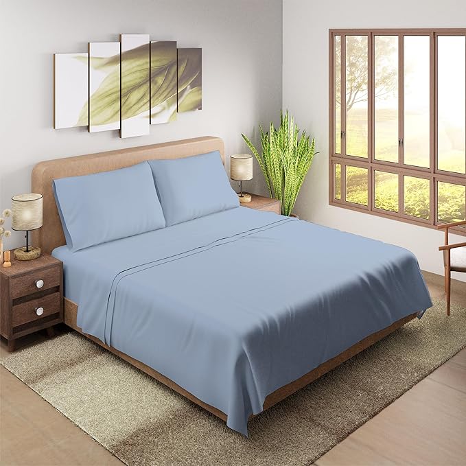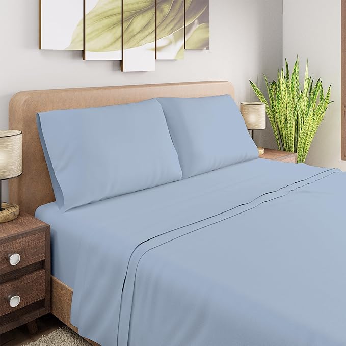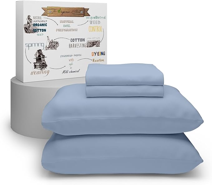 Purity Home Organic 100% Cotton Light Blue Full Size Bed Sheets, Percale Weave Cotton Sheet Set for Full Size Bed, Crisp, Cooling & Breathable Bed Sheets, Fits Mattress Upto 16" Deep Pocket